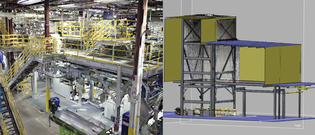 View, Measure and model every steel beam, piping, conduit, duct, steel beam and piece of machinery on the manufacturing floor.